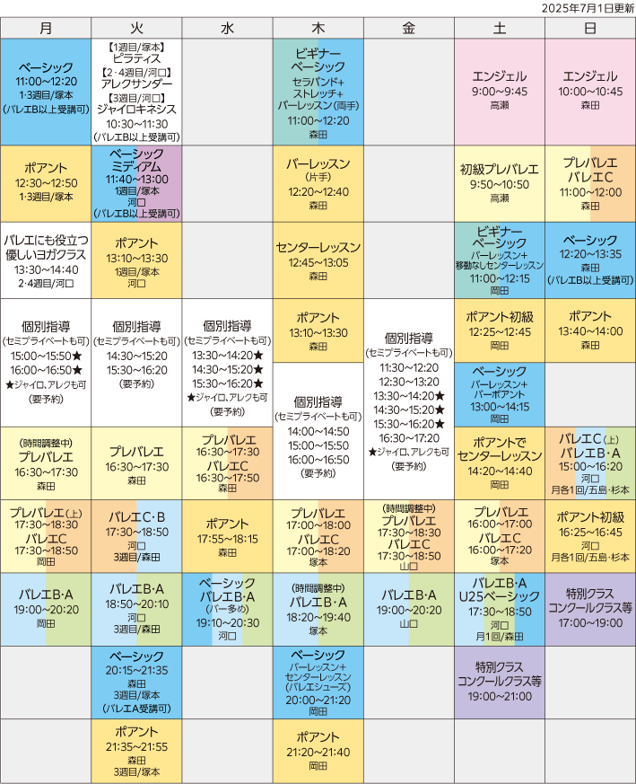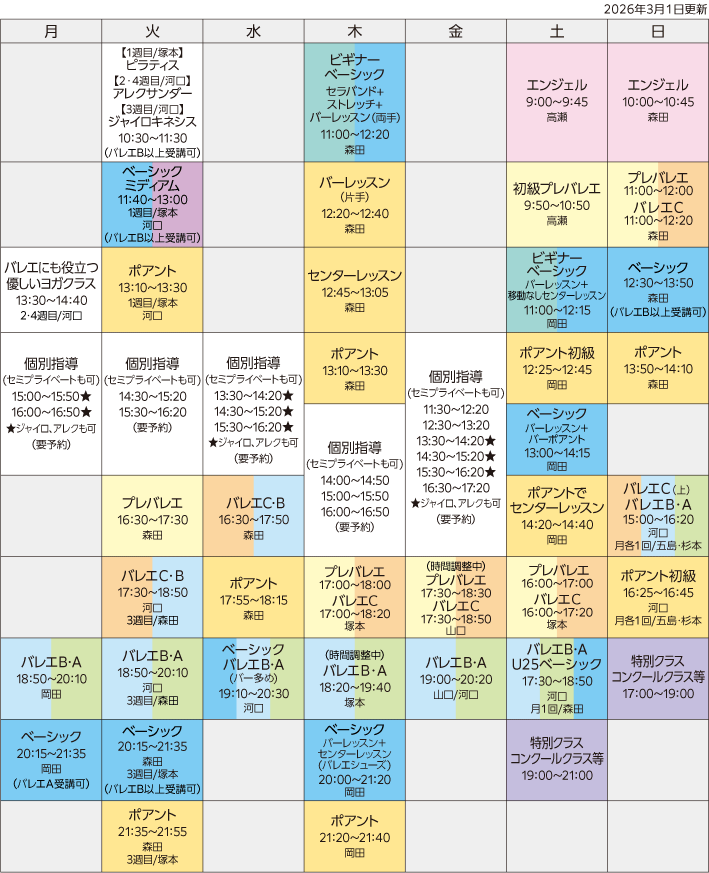 ※20分クラスはポアントチケット1回分です(センターレッスン含む)。